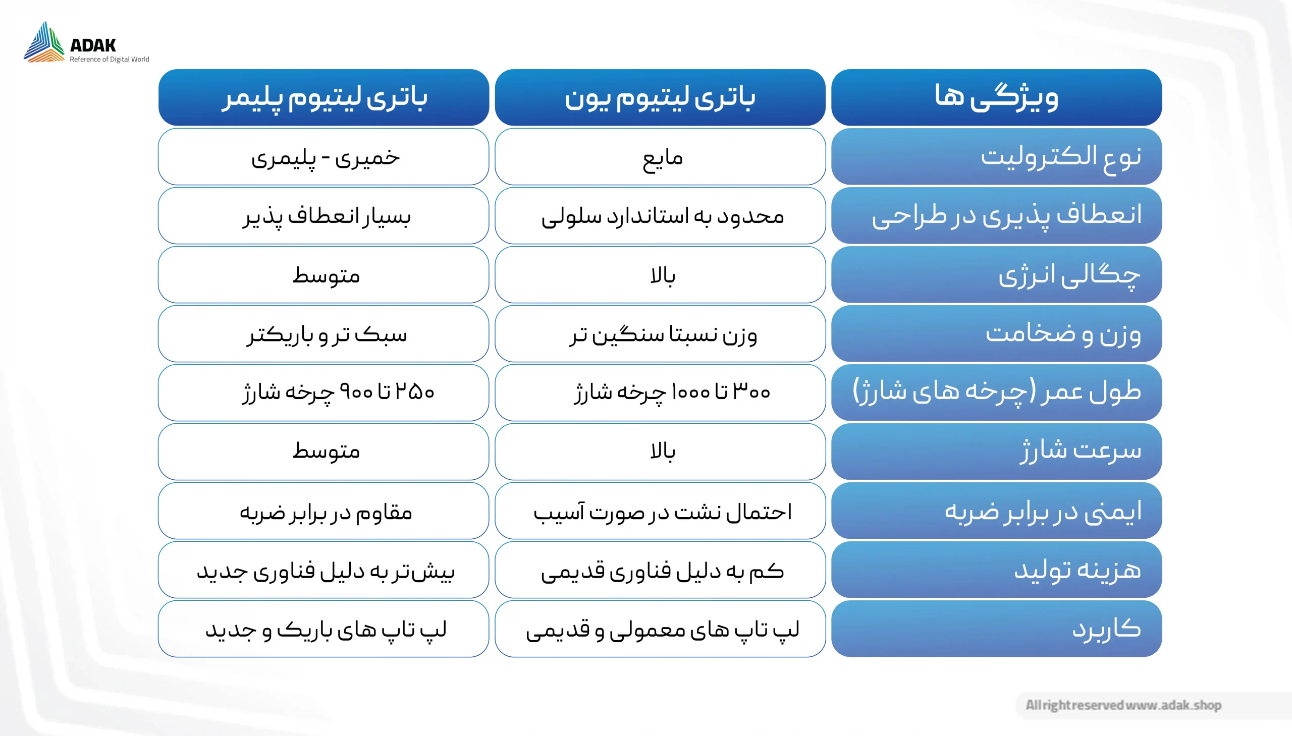 مقایسه باتری لیتیوم یون و لیتیوم پلیمر